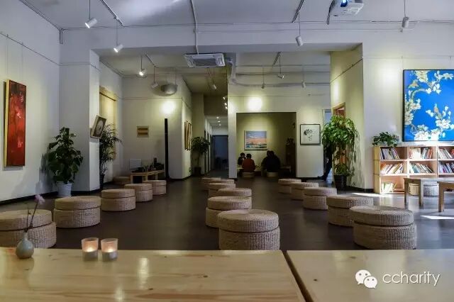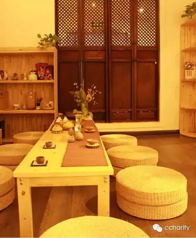 这家隶属于上海美丽心灵社区公益基金会的茶语书屋,有一句四个单词的精炼概况:艺术、茶道、书屋、公益。