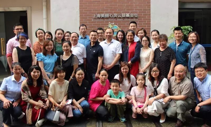 参与合影的有:上海市民政局相关领导、首批捐赠人代表安乔国际双语幼儿园院长与爱心家庭、基金会理事与专家代表、爱心设计师代表叶飞、媒体代表。